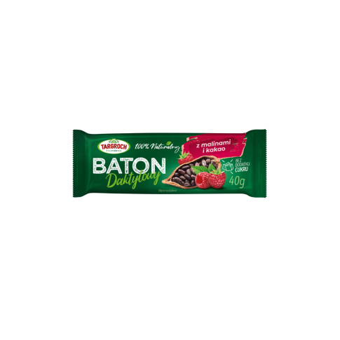 Baton daktylowy z malinami i kakao 40 g – bez dodatku cukru