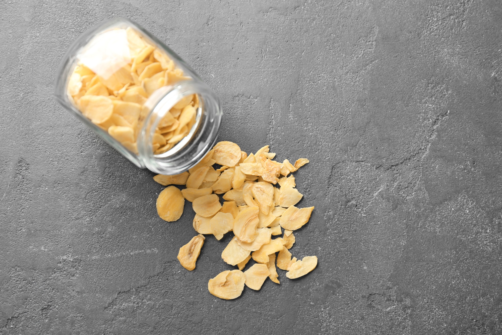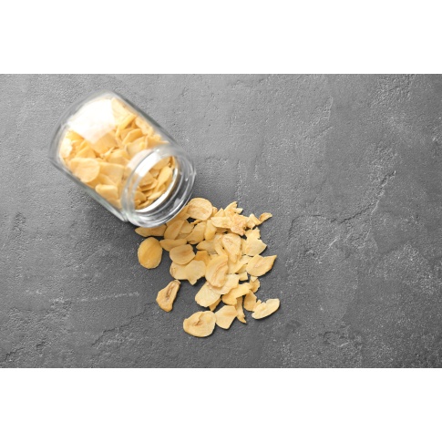 Wszyscy wiedzą o leczniczym działaniu czosnku. Oprócz wielu witamin A, B i C oraz minerałów, takich jak wapń, selen, jod i inne, ma korzystny wpływ na układ odpornościowy i ogólnie korzystnie wpływa na nasz organizm. Ma jednak bardzo mocny aromat i ostry do ostrego smaku, co nie jest przyjemne dla każdego. Suszony czosnek jest znacznie bardziej miękki i łatwiej przyswajalny. Płatki czosnku charakteryzują się intensywnym smakiem oraz zapachem, dzięki którym polecany jest osobom, które lubią wyraziste, pikantne potrawy. Sprawdza sie jako dodatek do mięs, zup, sosów, ryb, a także kiełbas czy pasztetów własnej roboty. Przyprawa ta kapitalnie nadaje się do dziczyzny, drobiu i mięsa z królika.