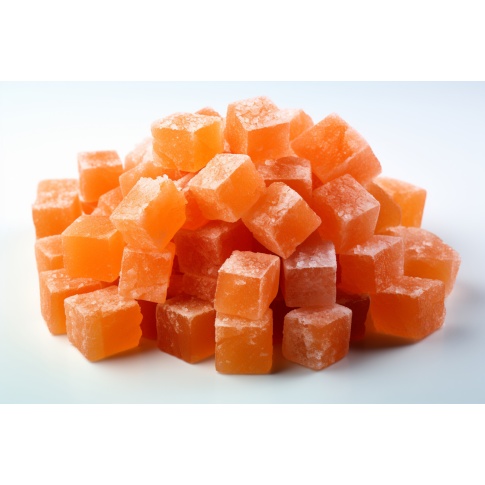 Papaja kostka kandyzowana – naturalna, egzotyczna przekąska o intensywnym smaku i soczystym kolorze. Wyselekcjonowane plastry dojrzewającej papai są poddawane delikatnej obróbce i kandyzowane w cukrze trzcinowym, dzięki czemu zachowują unikalną strukturę oraz słodko-kwaśny, tropikalny aromat.